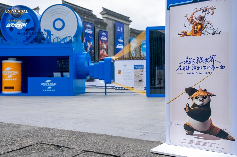 此外,今年环球影城与乌镇戏剧节三度合作,为戏剧快乐增添“童趣”元素:小黄人斯图尔特与杰瑞、啄木鸟伍迪、朱利安国王等国际IP现身集市,与观众互动。“挑战演戏走入电影大片”体验环节更是让普通人过一把“演员瘾”。在“超无限世界”专属片场,游客可在大片世界留影墙特别装置领取对应的七大主题影片台词后,进入特别表演空间即兴开演,体验艺术与娱乐交融的魅力。表演完成后,游客还能收到自己此次的表演视频,留下独一无二的创作回忆。