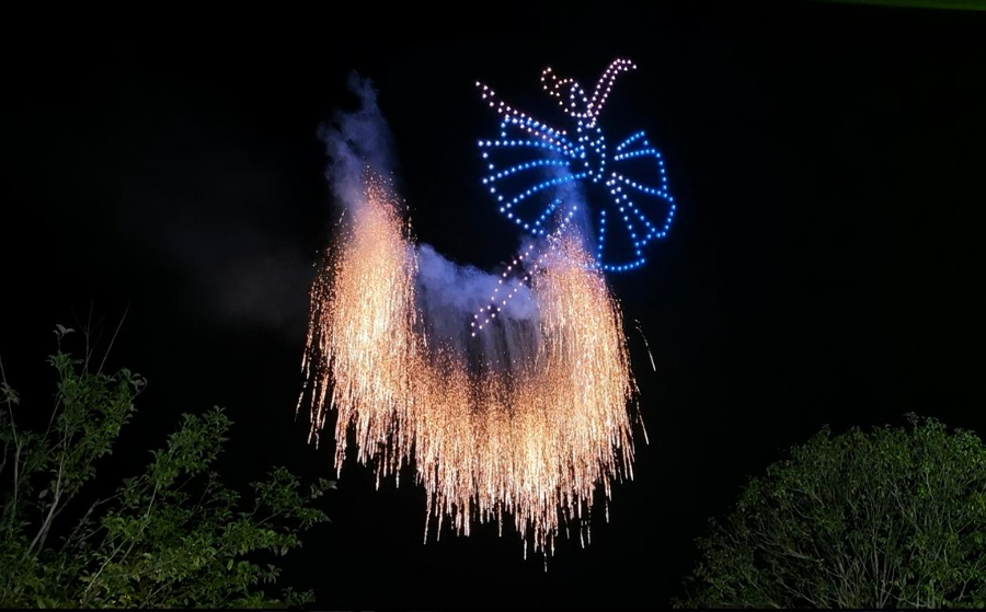 随着夜幕深沉,乌镇上空的无人机表演将节日气氛推向高潮,点点亮光与璀璨烟花交相辉映,将夜空装点得格外梦幻。